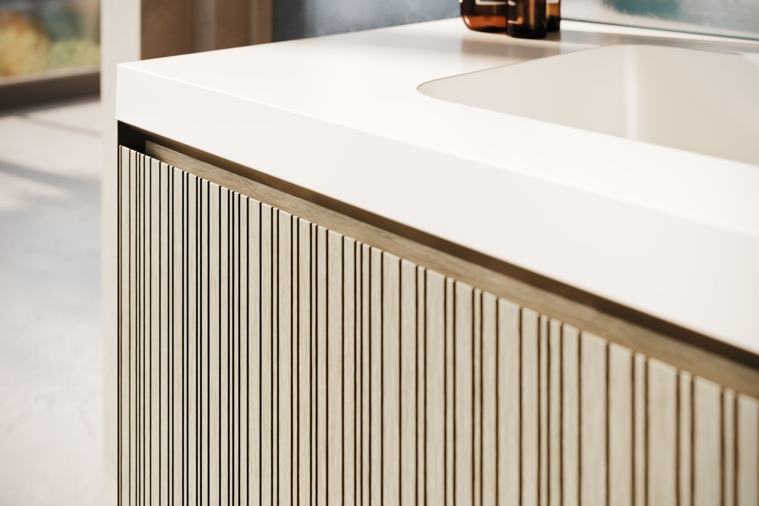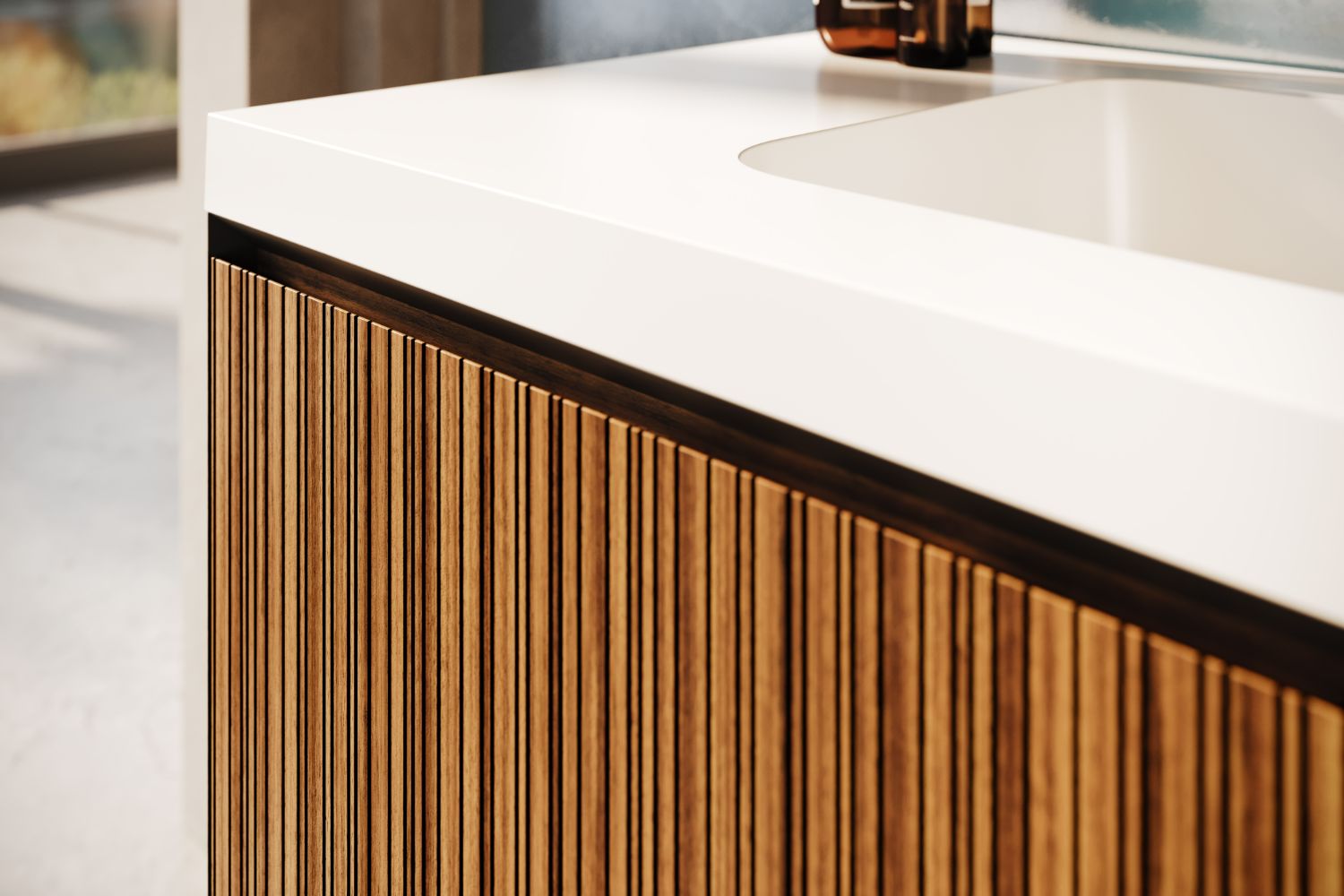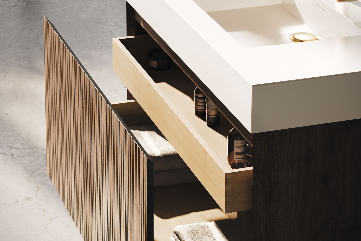 Rayado features a musical pattern of vertical grooves in the drawer façade creating a rich texture that exudes warmth and refinement.