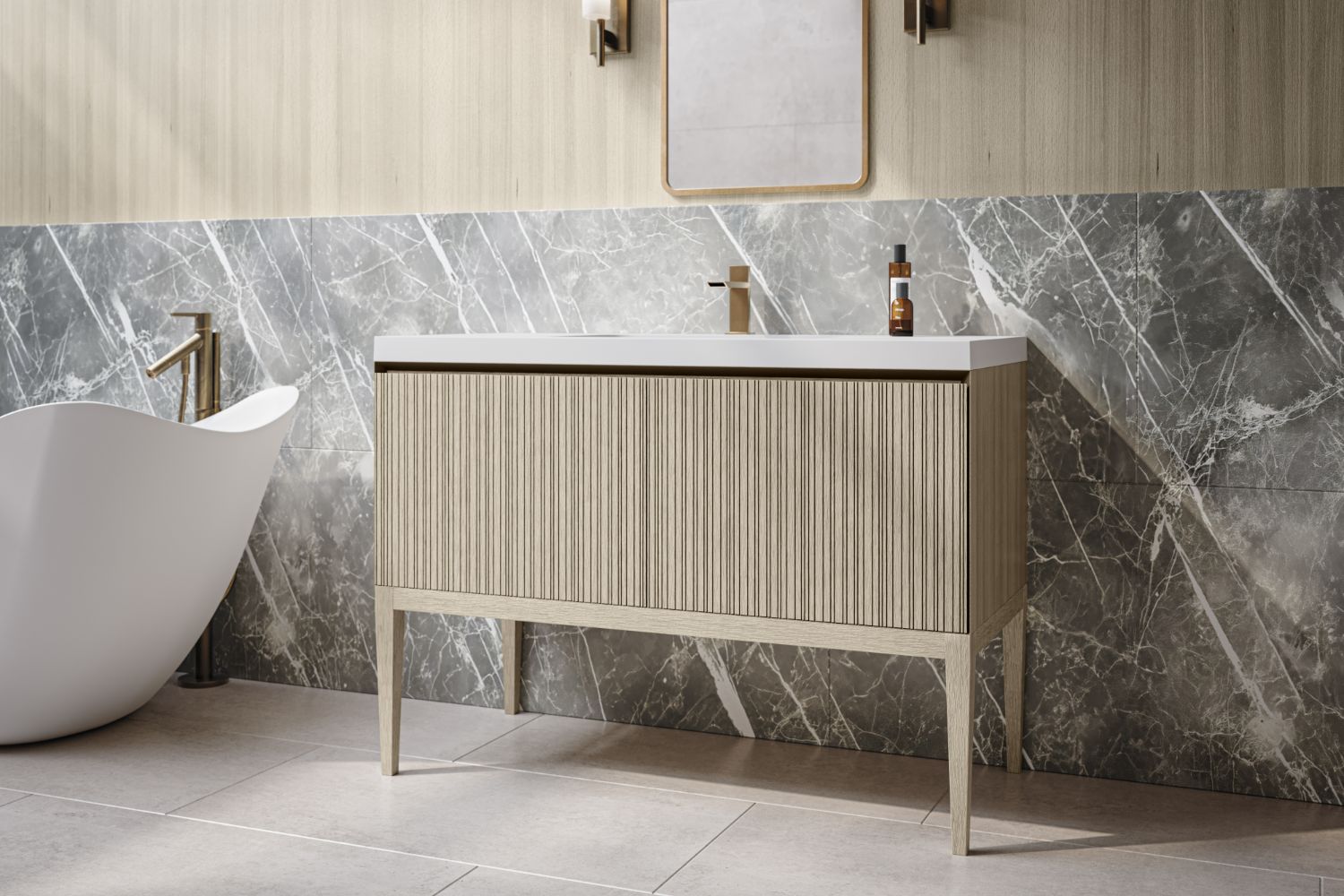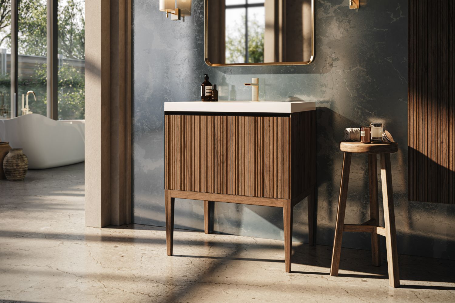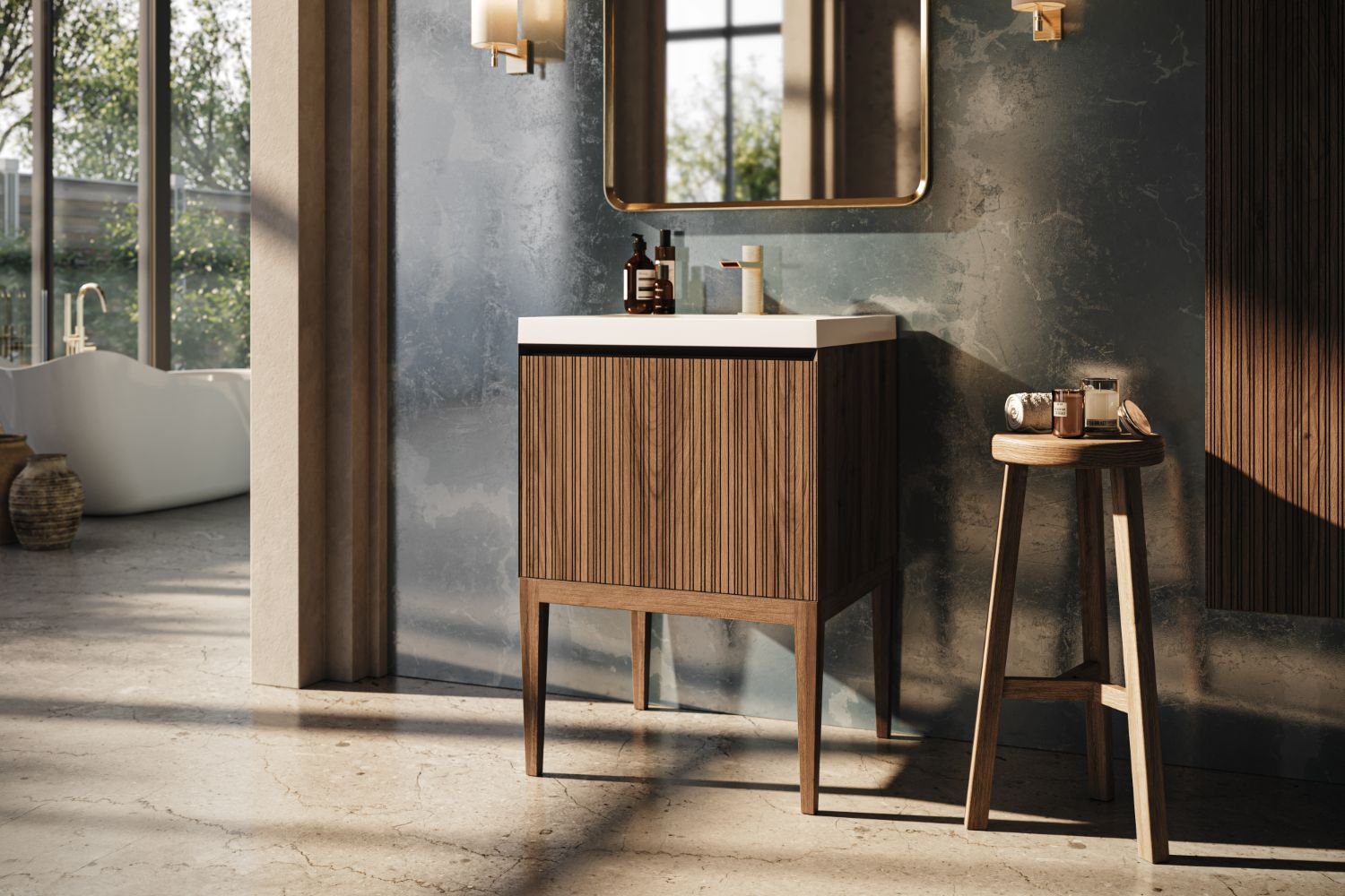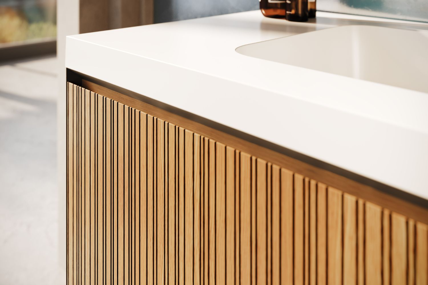 Rayado features a musical pattern of vertical grooves in the drawer façade creating a rich texture that exudes warmth and refinement.