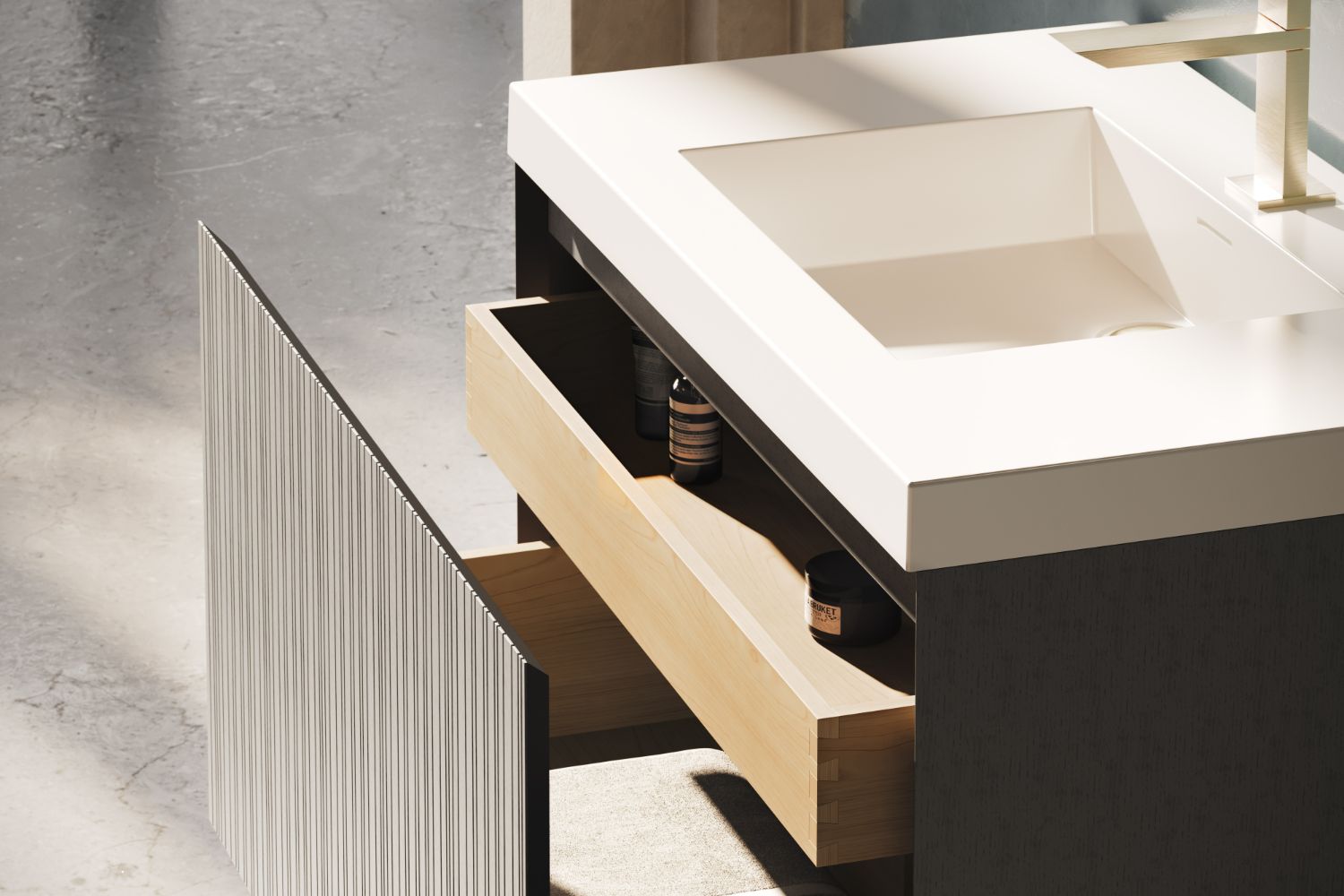 No matter the selection, Rayado elevates the bathroom experience with seamless and thoughtfully designed interior drawer organization elements to maximize storage yet keep necessities effortlessly within reach.