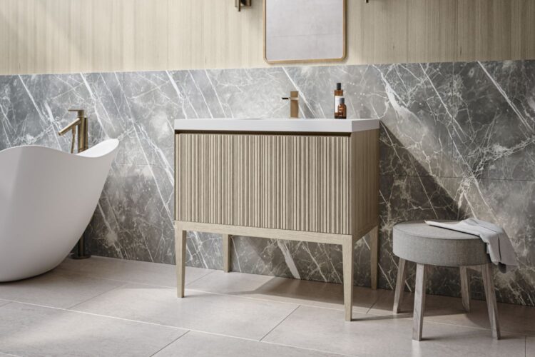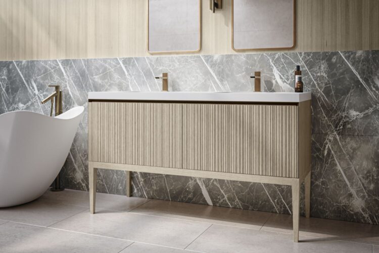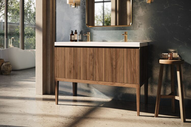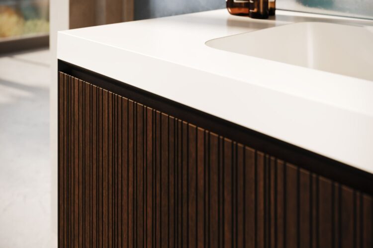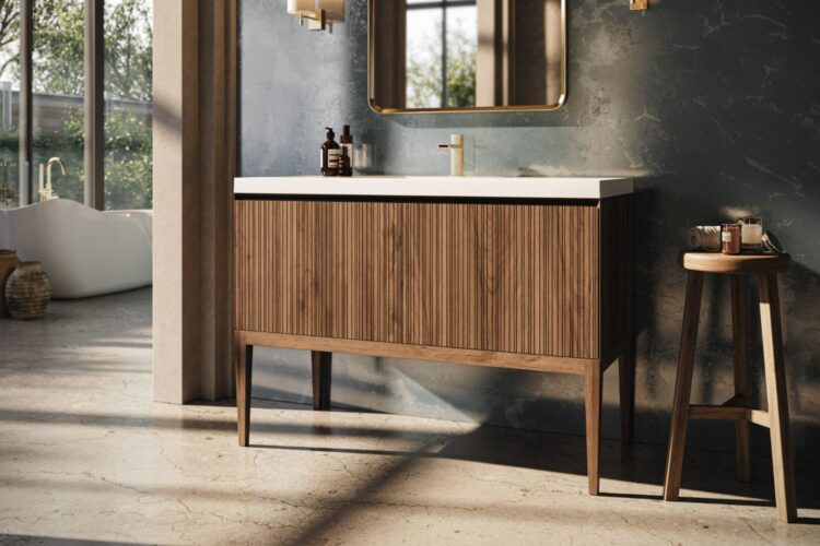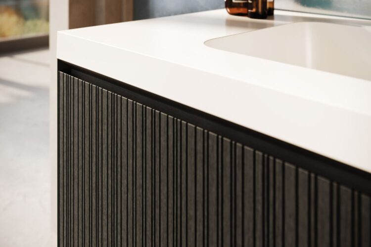 Rayado features a musical pattern of vertical grooves in the drawer façade creating a rich texture that exudes warmth and refinement.