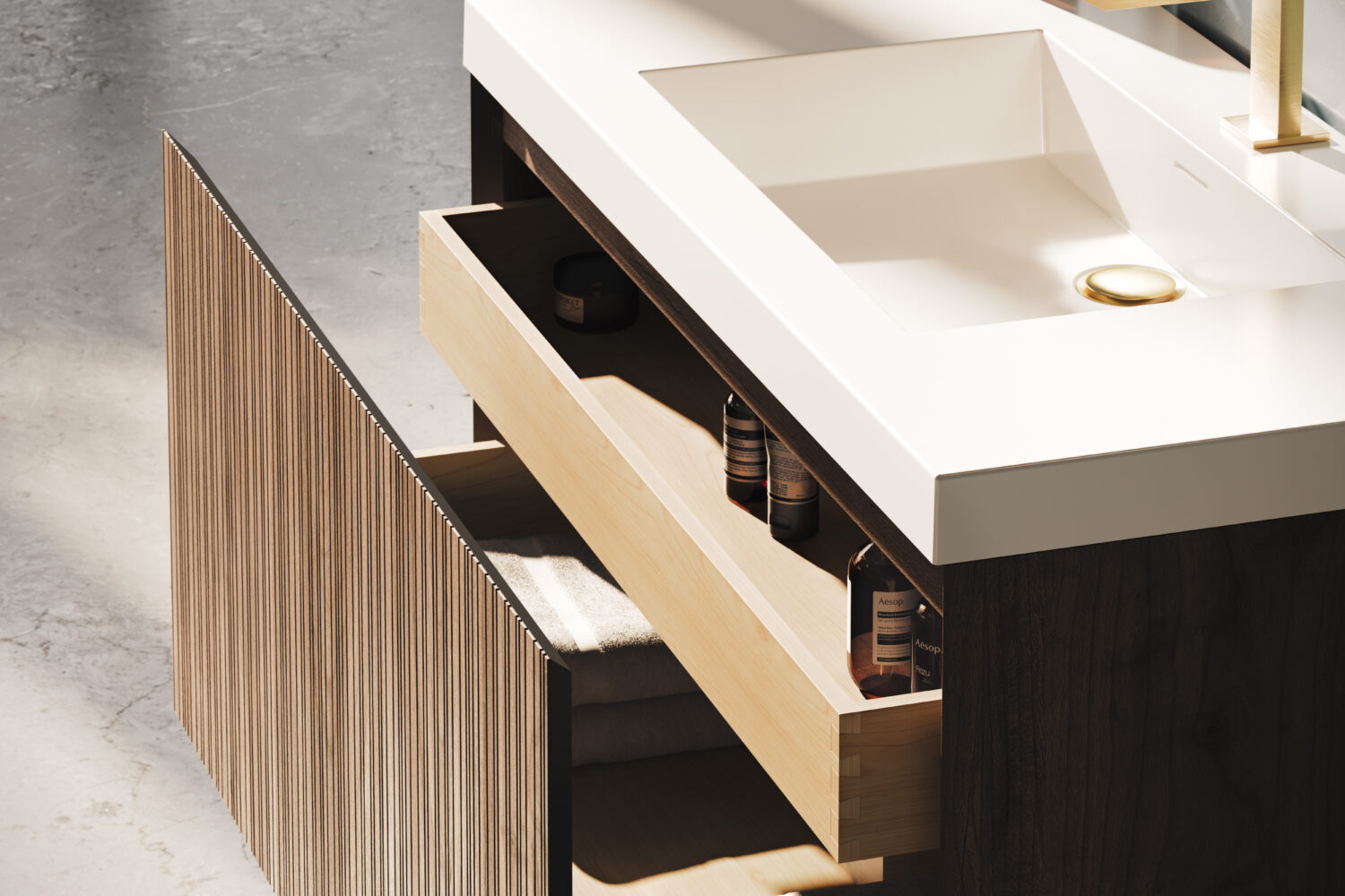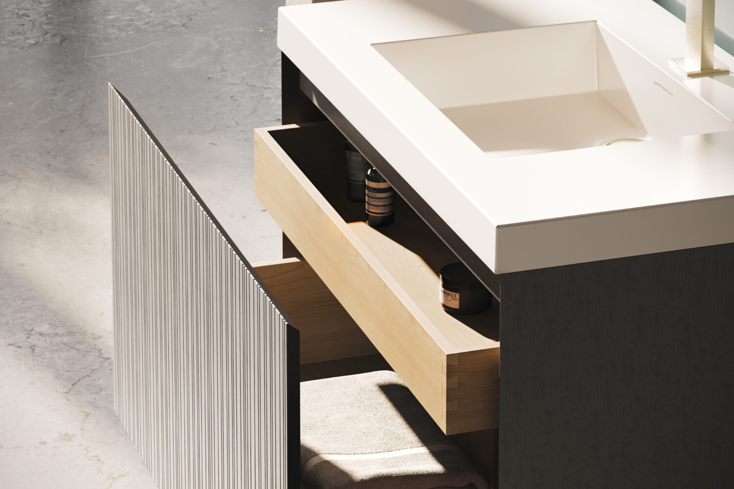 No matter the selection, Rayado elevates the bathroom experience with seamless and thoughtfully designed interior drawer organization elements to maximize storage yet keep necessities effortlessly within reach.