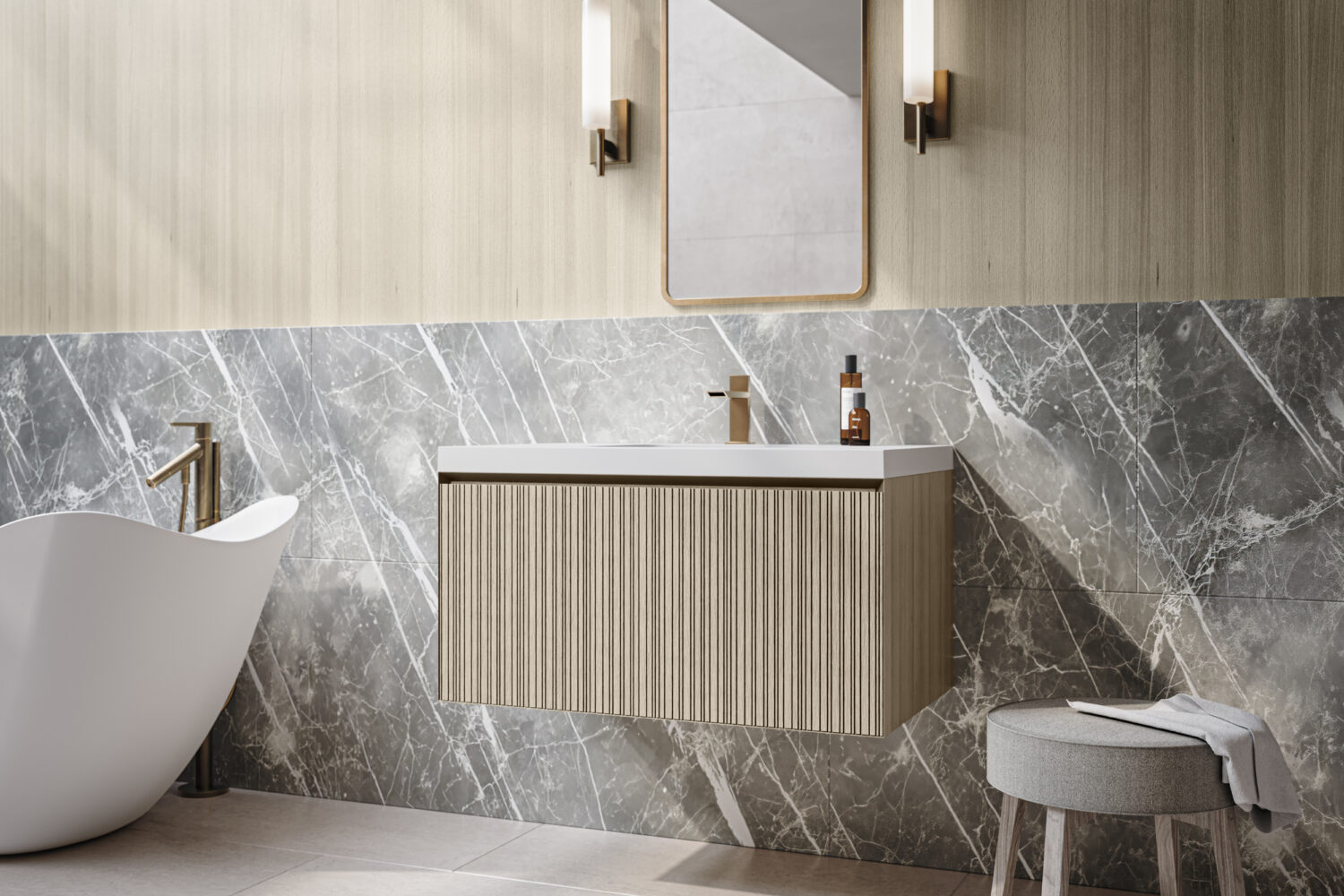 The Rayado vanity collection seamlessly blends elevated craftsmanship with everyday functionality. Available in floating and floor mount configurations, Rayado offers a customizable aesthetic that adapts to a variety of bathroom styles, making it a versatile and sophisticated choice for modern interiors.