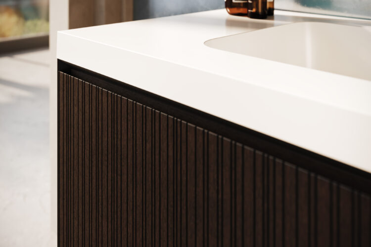 Rayado features a musical pattern of vertical grooves in the drawer façade creating a rich texture that exudes warmth and refinement.